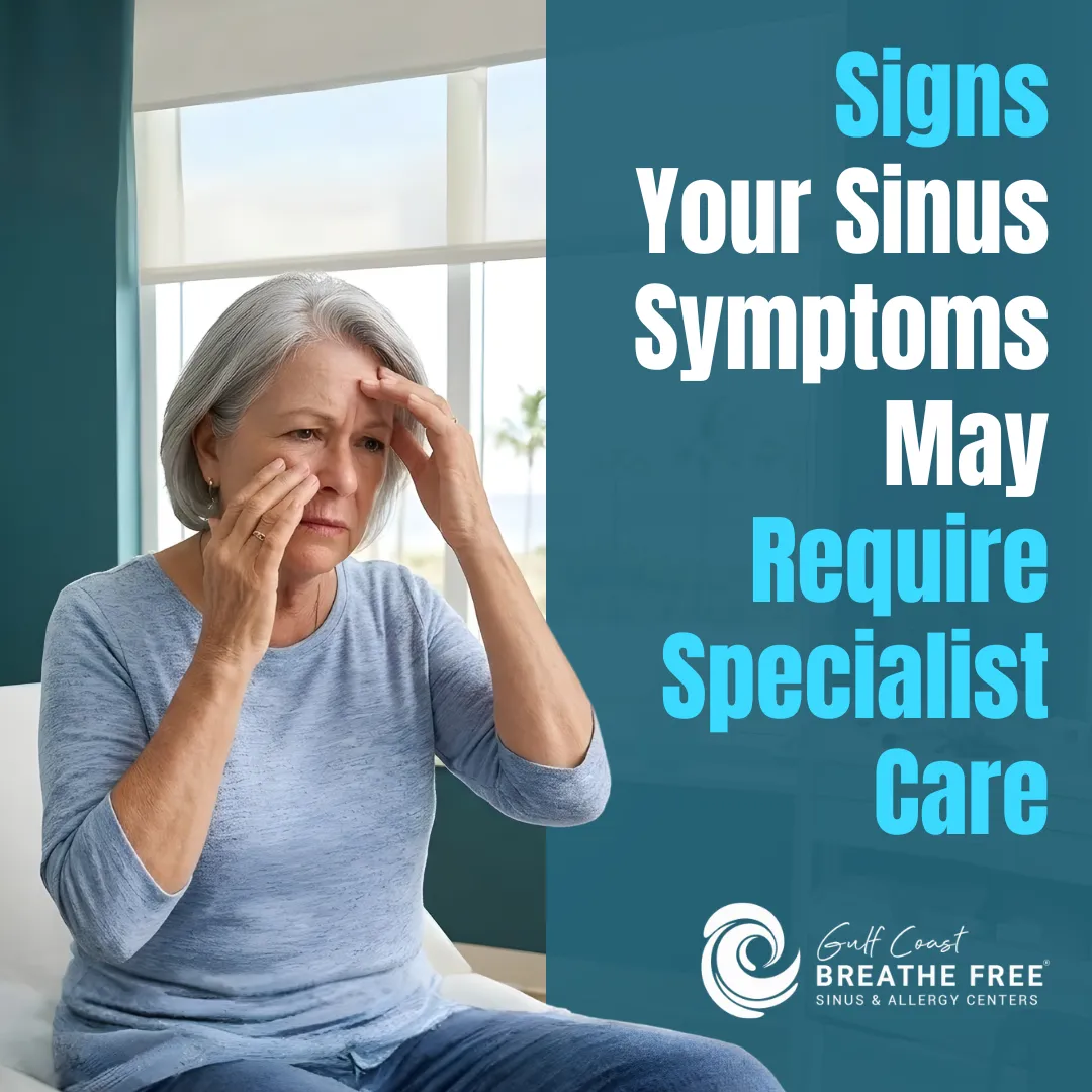 Lingering sinus symptoms can wear you down, especially when they keep interrupting your sleep, comfort, and routine. If you have been dealing with congestion, pressure, drainage, or repeat sinus issues and still do not feel like you have clear answers, it may be time for a closer look. Schedule an appointment with Gulf Coast Breathe Free Sinus & Allergy Centers to talk through your symptoms and learn what kind of care may help you move forward.